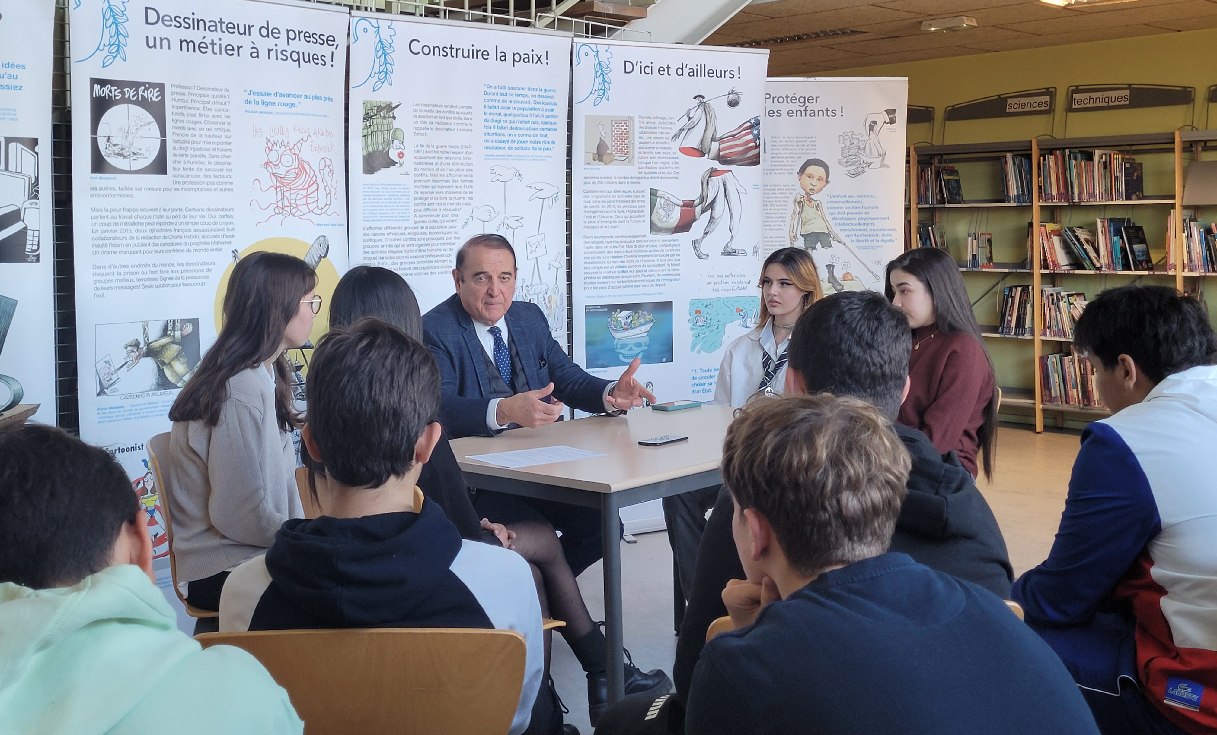 M MESQUIDA a pu rencontrer également les élèves du club Mémoires qui recueillent des témoignages de différents acteurs sur le vécu de la guerre d'Algérie.